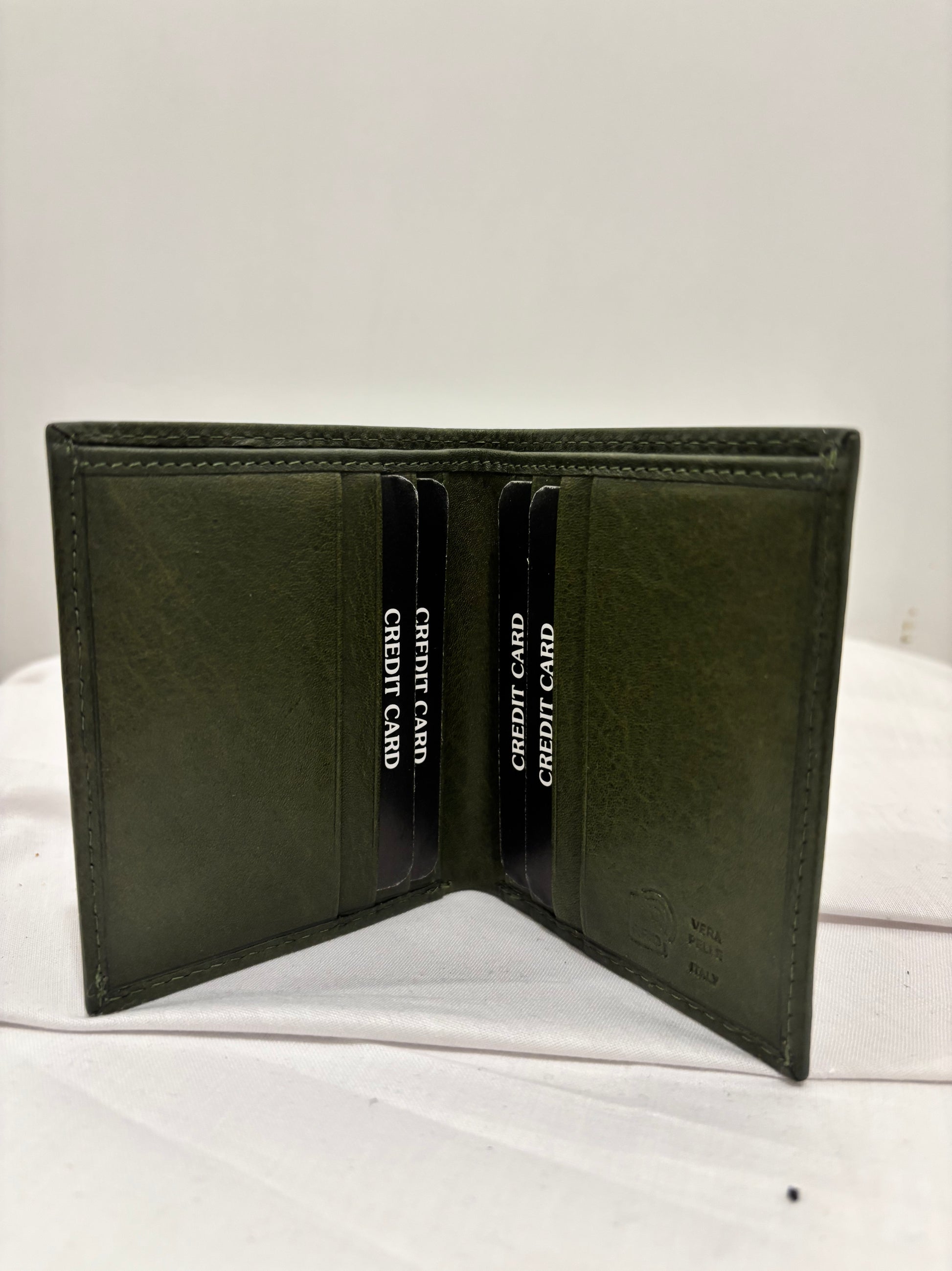 Portacarte di credito in pelle per 6 carte e scomparto per le banconote.