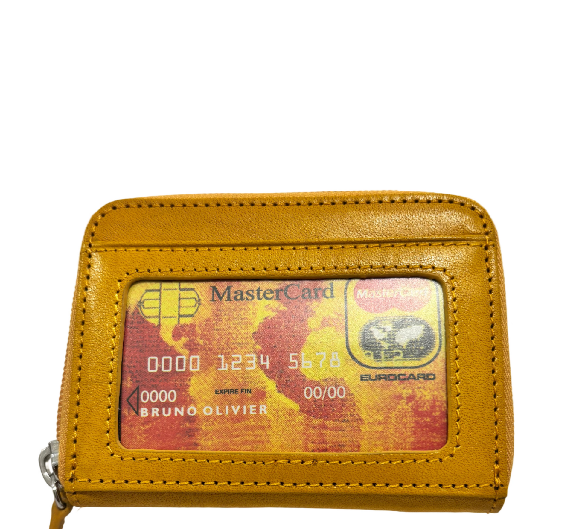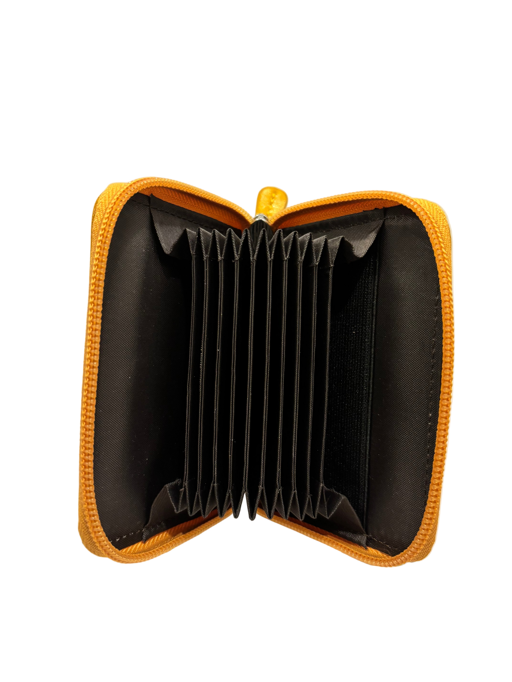 Porta carte in pelle con scomparti a soffietto per 10 carte di credito.
