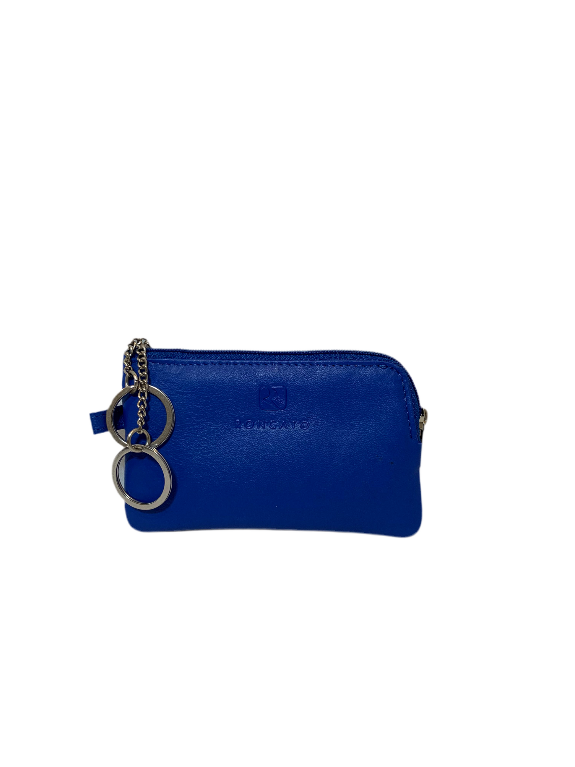 portachiavi in vitello nappato a bustina con zip principale e zip esterna ,2 catenelle interne con anelli .