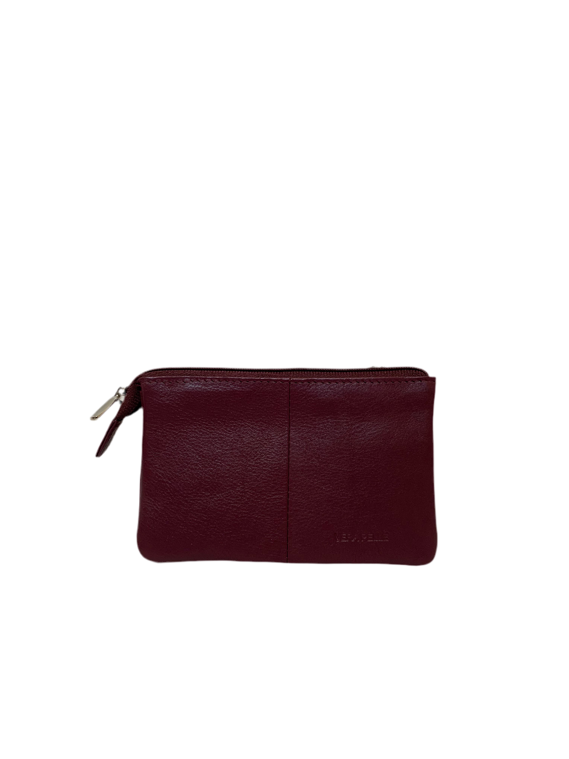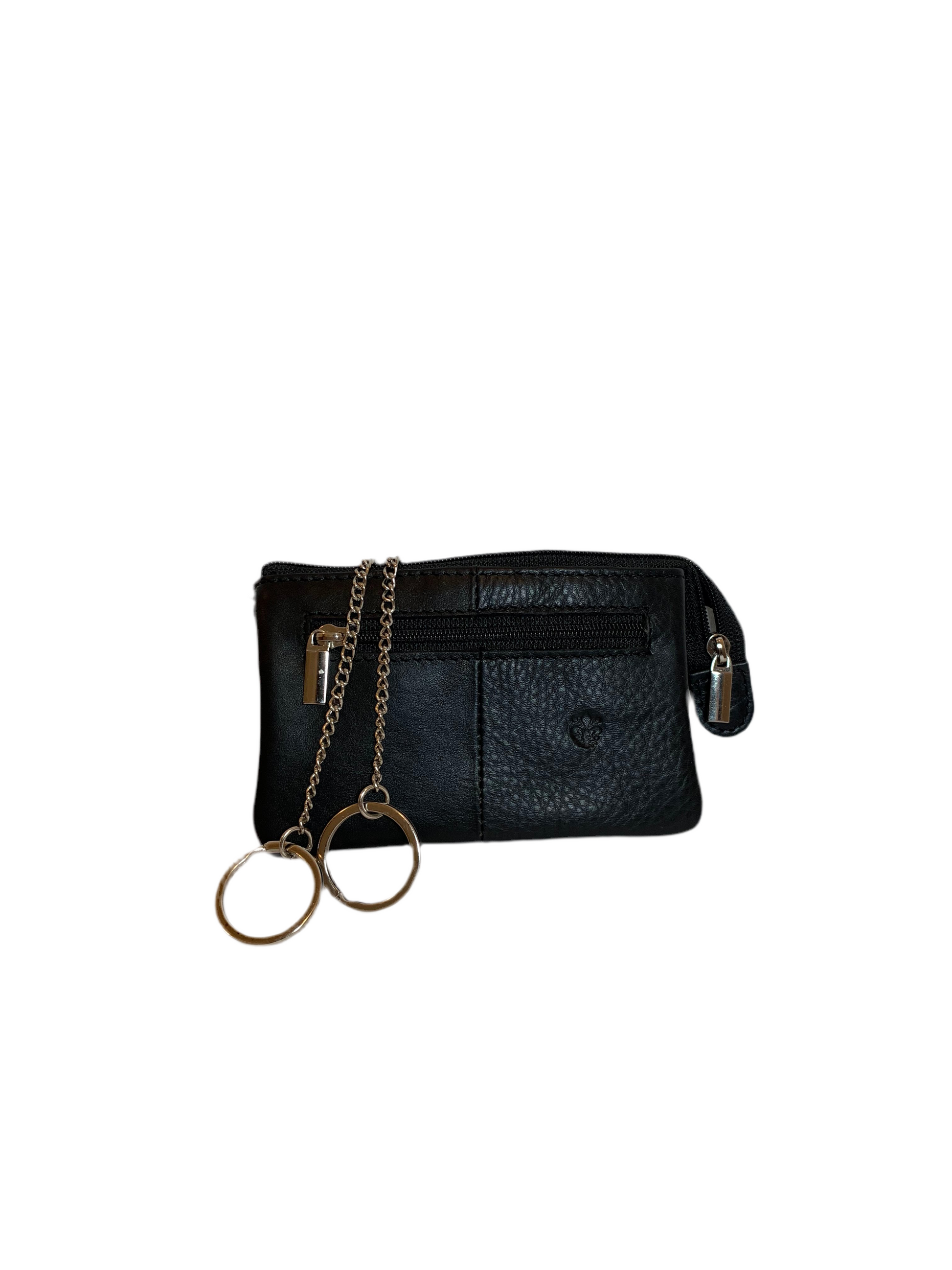 portachiavi a bustina con zip , 2 scomparti interni , zip frontale , 2 catenelle con anelli