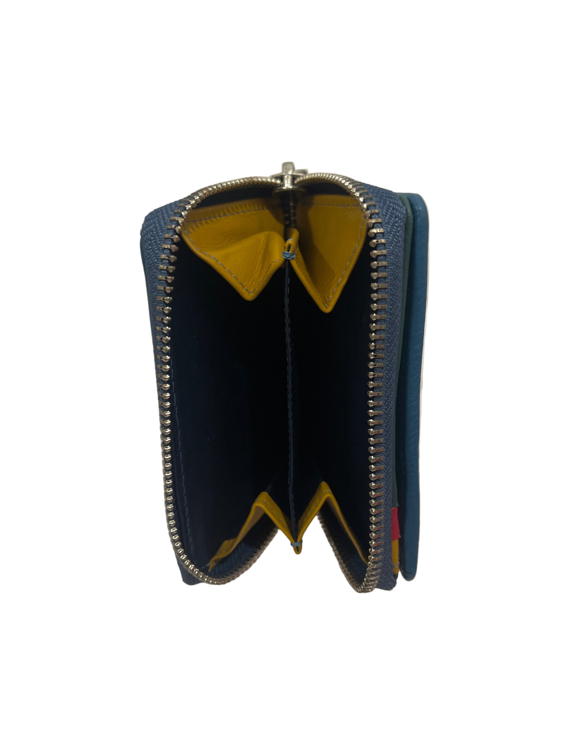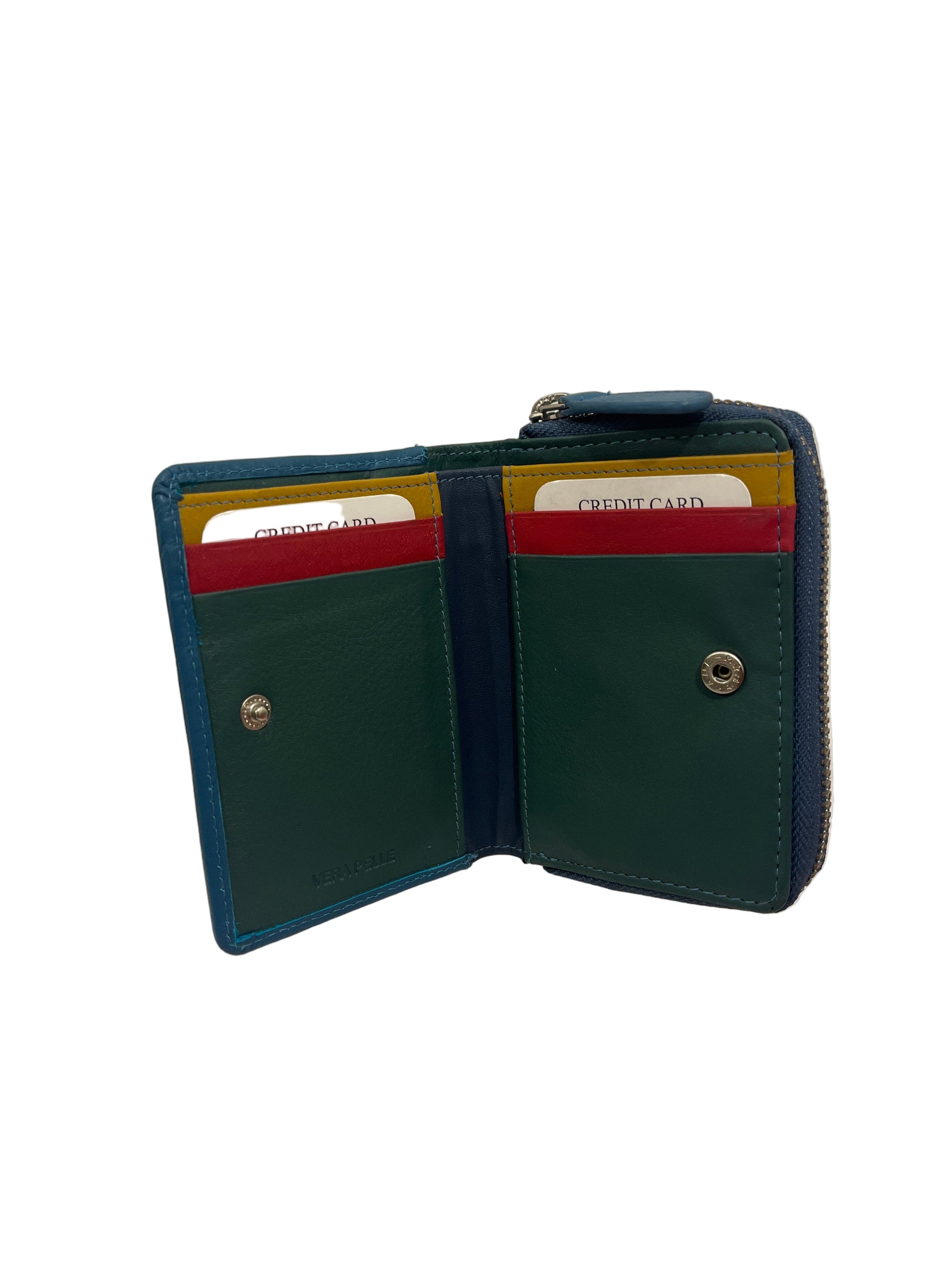 Portafoglio in pelle fiorentina donna con zip esterna per le monete, scomparto banconote e carte. Interno multicolor. 12cm di altezza, larghezza 10cm di larghezza.