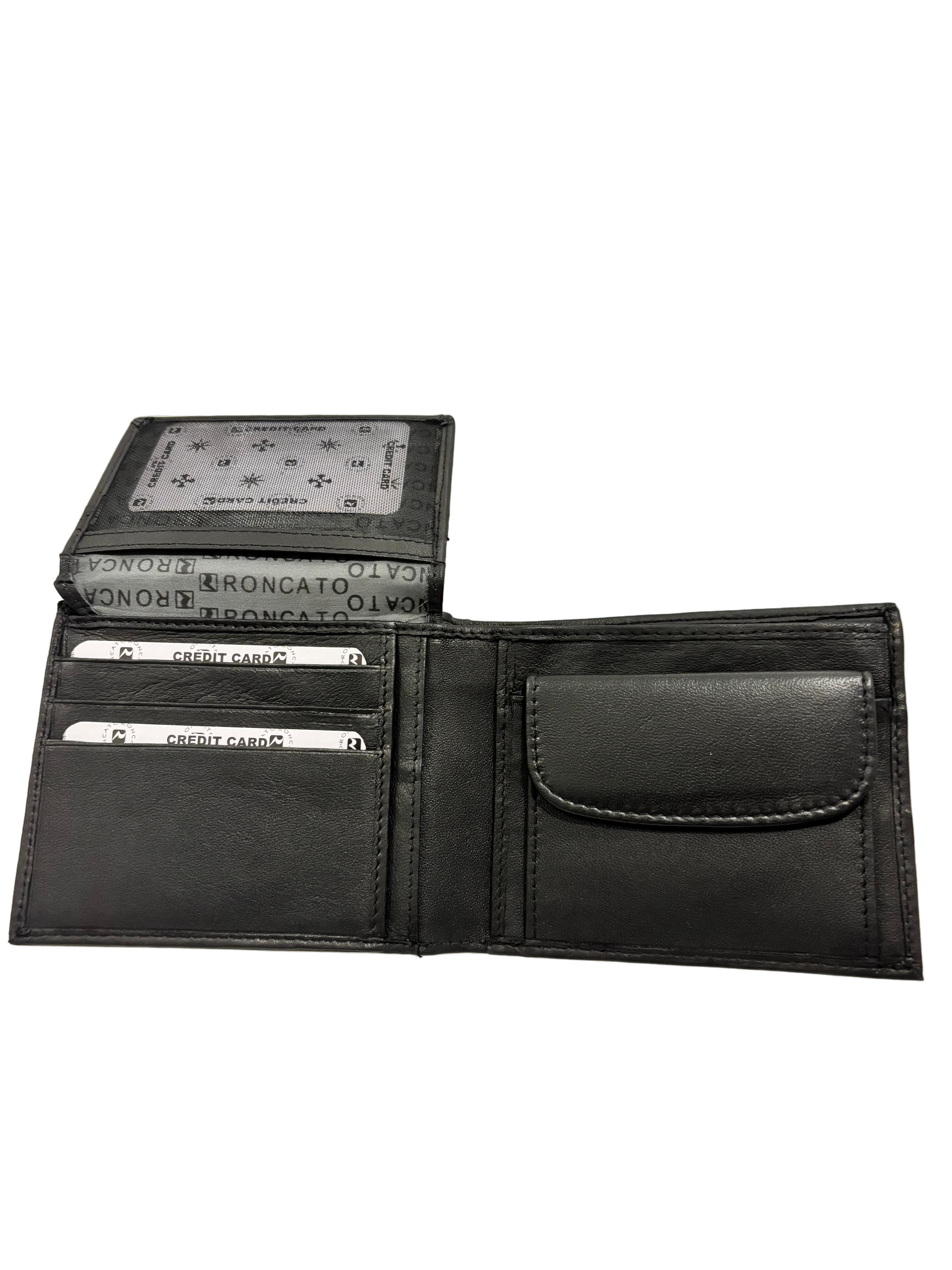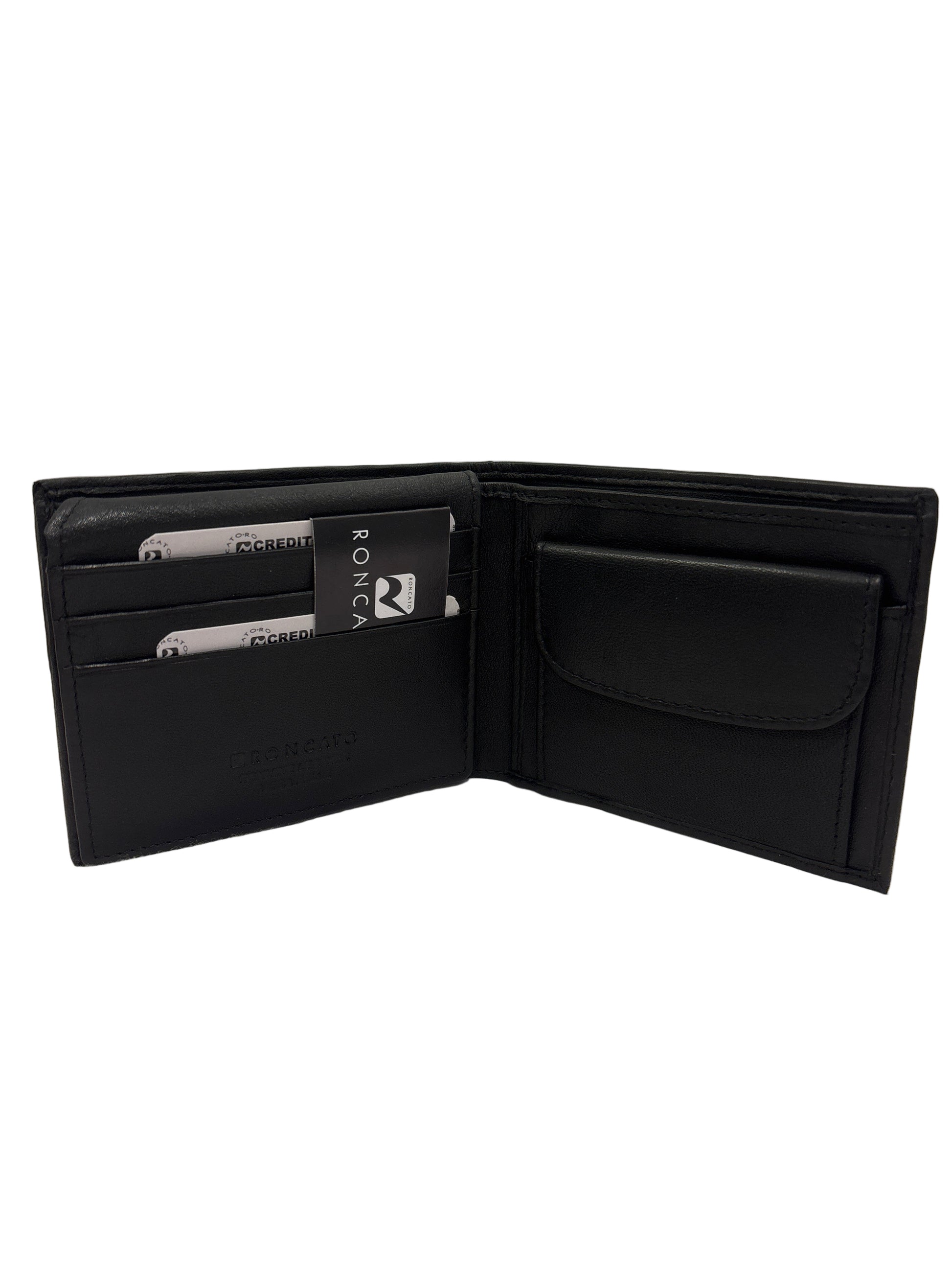 Portafoglio uomo in pelle nappa Roncato portamonete e porta carte dotato di patta per carte.