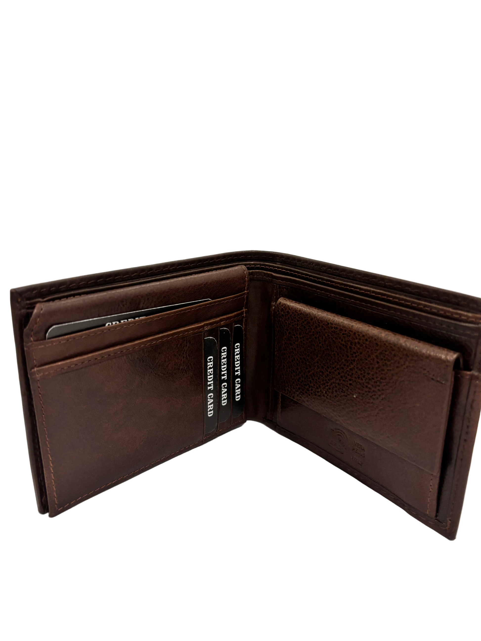 Portafoglio uomo Pelletteria Fiorentina in vitello bottalato dotato di patta interna per le carte e porta monete. Doppio scomparto banconote e protezione RFID