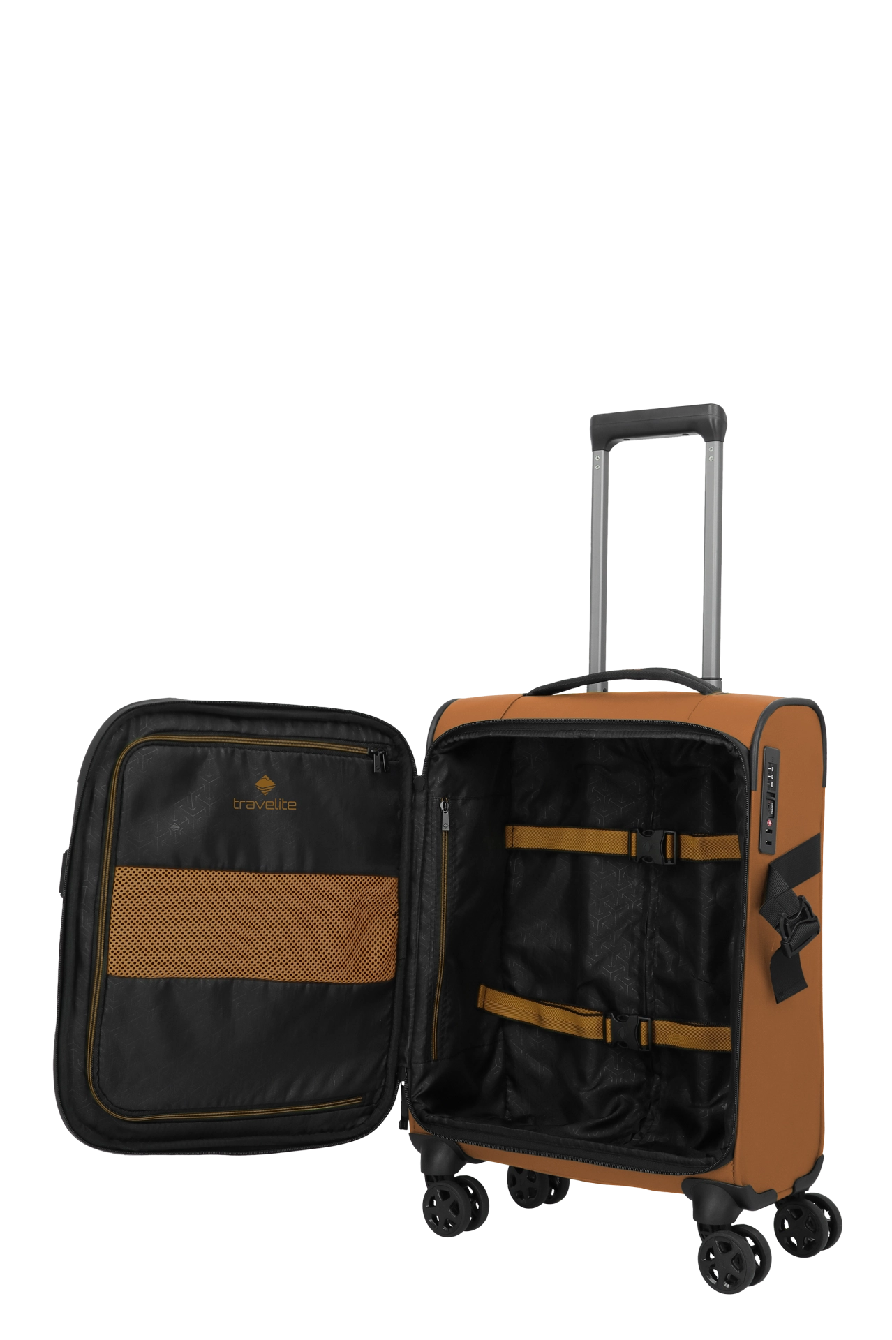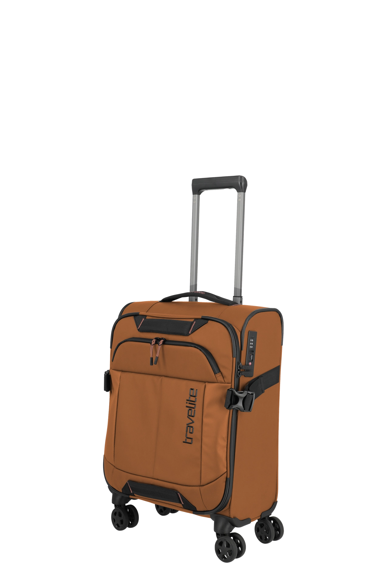 Linea sportiva e accattivante in nylon telato idrorepellente, 4 ruote, leggero, espandibile, fascia posteriore per infilare il trolley sopra ad un altro trolley più grande.