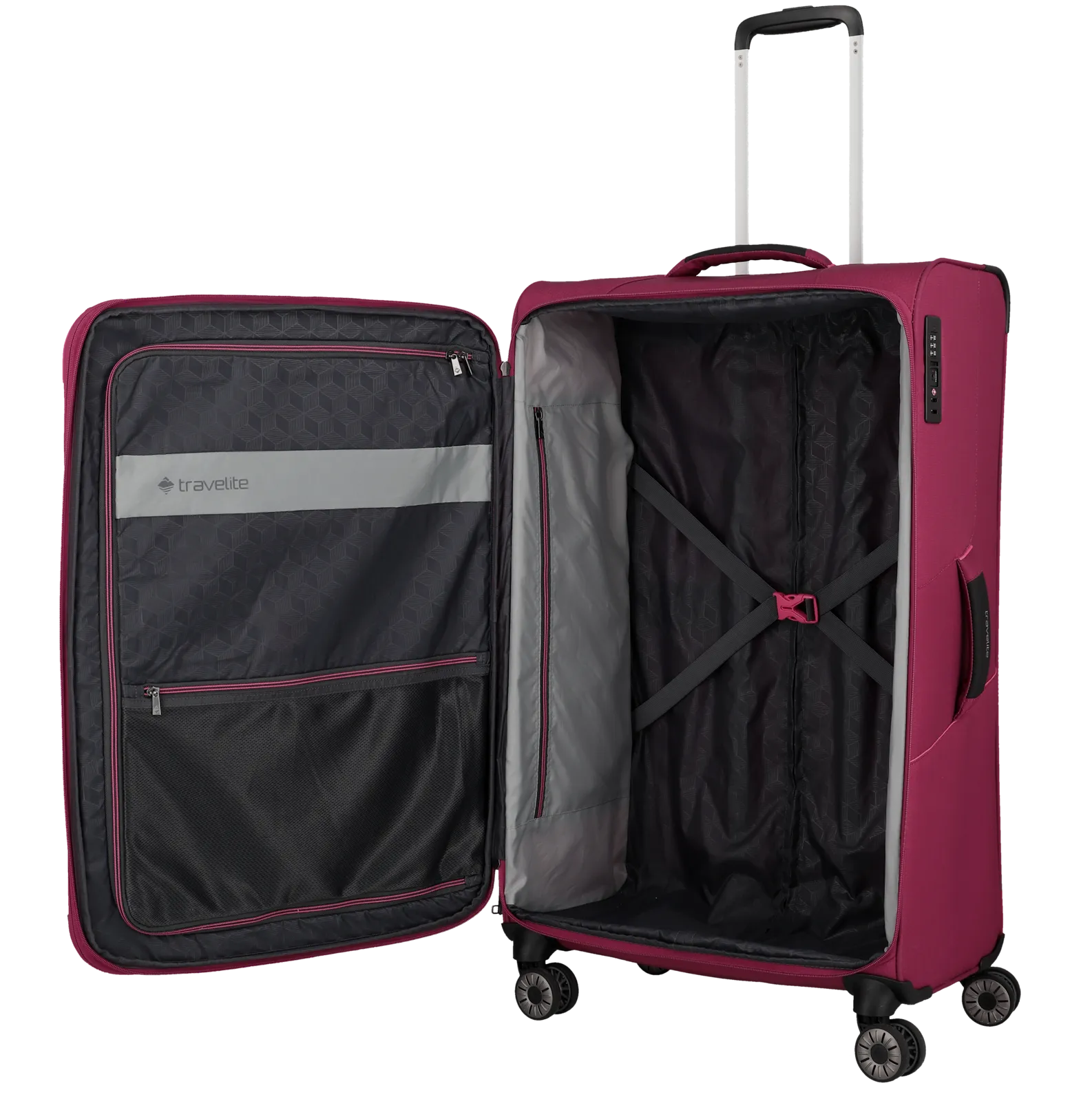 Solo 2,9 kg di peso . Poliestere riciclato . Espandibile . Serratura TSA integrata . 2 pratiche tasche zippate . Organizzazione interna funzionale .