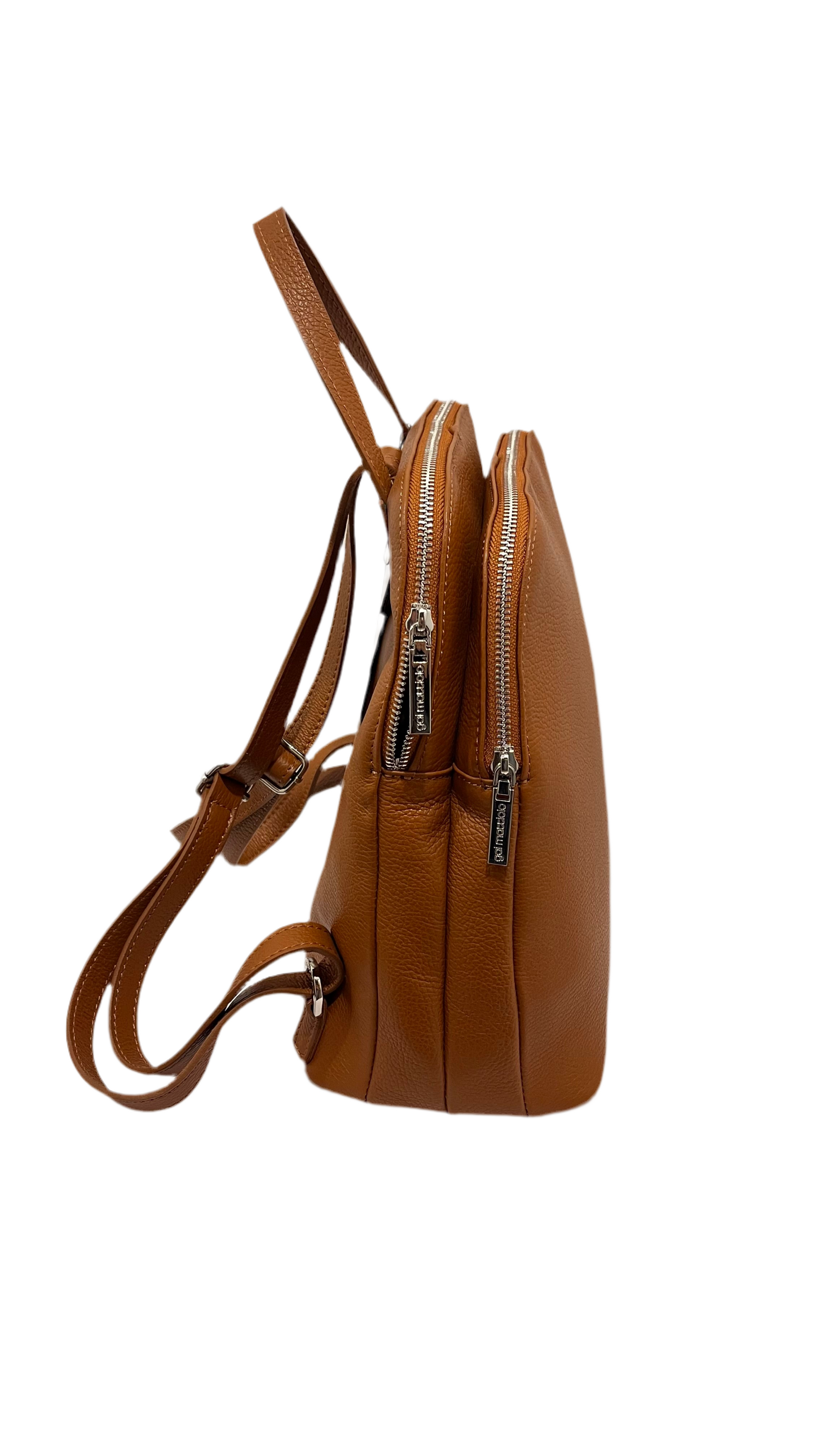 Zaino in pelle con doppio scomparto esterno separato e scomparto posteriore con zip