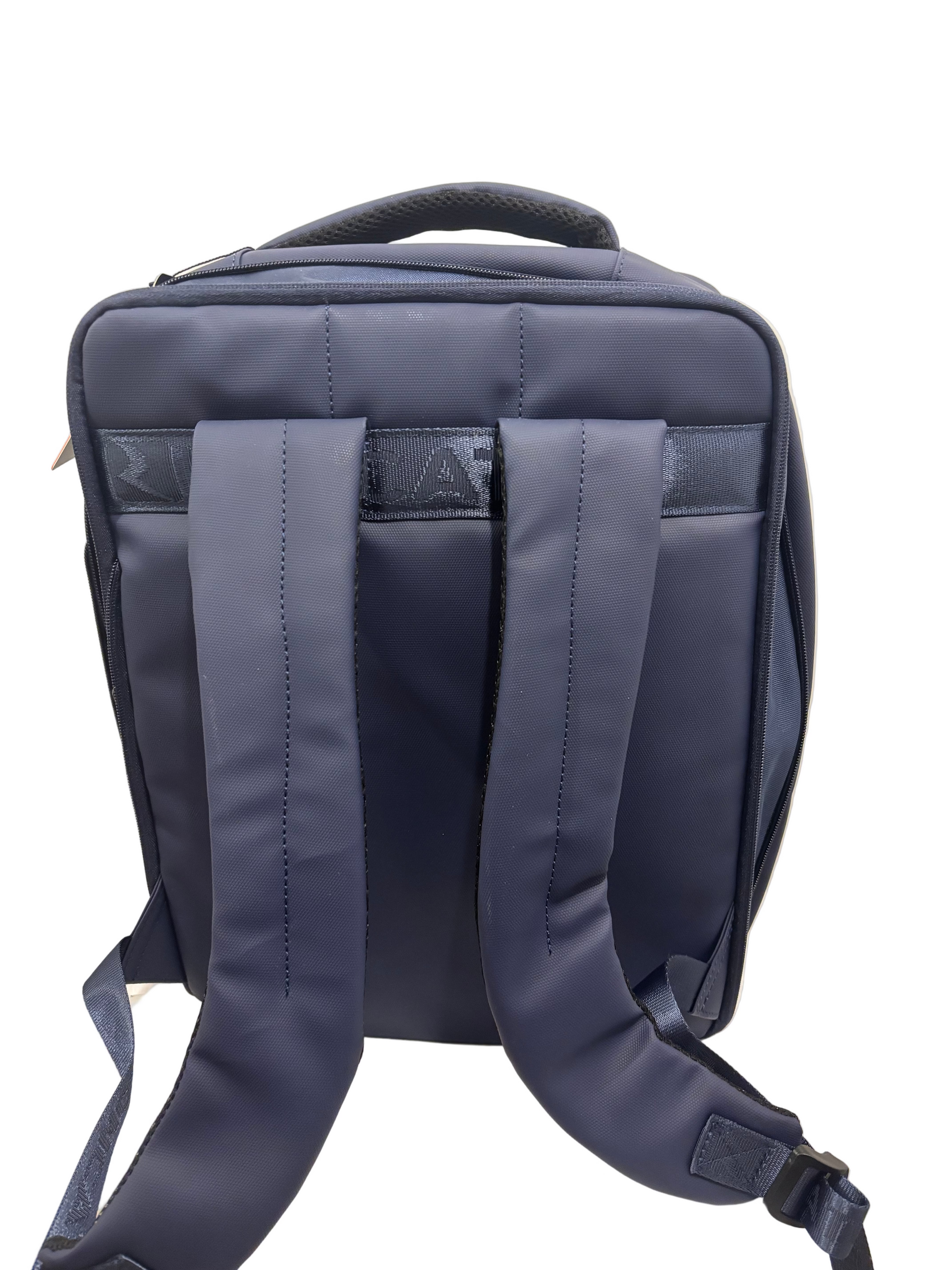 Zaino sotto sedile Roncato cm. 40x30x20 in tessuto tecnico e gommato. Tasca frontale, scomparto centrale uso valigia, espandibile per aumentare capacità di carico.