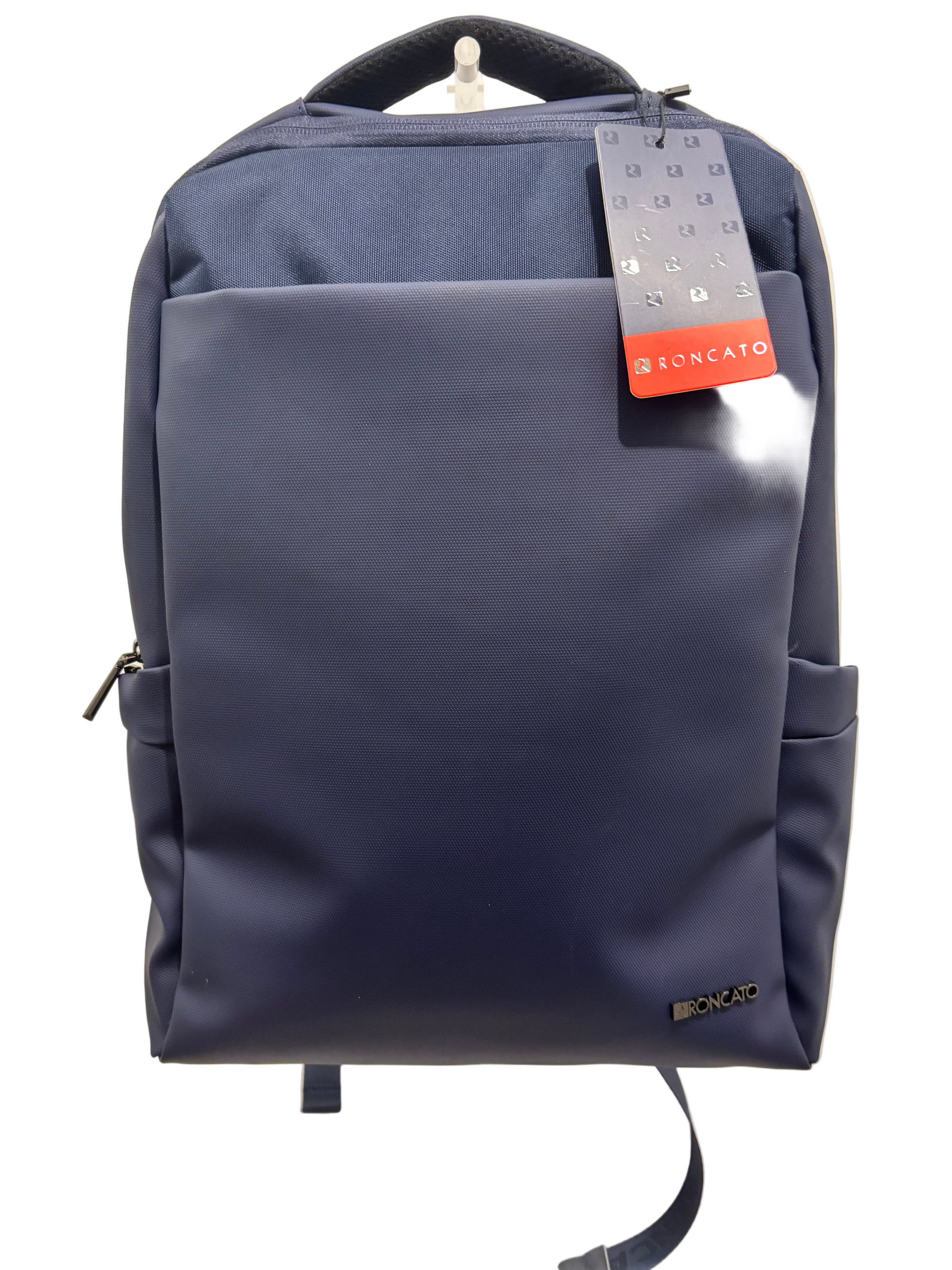 Zaino Roncato in tessuto tecnico e gommato cm. 40x28x15. Tasca frontale, doppio scomparto con tasche interne e porta computer 15’, asola per attacco trolley